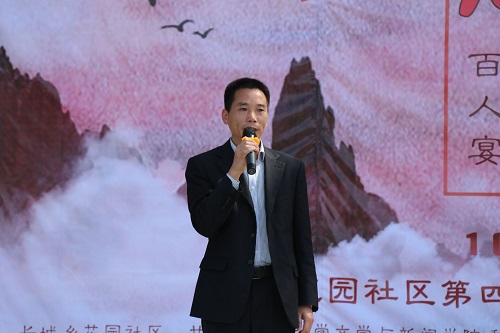 上午十点,“重阳节百人宴”活动正式开始。在庄严的升旗仪式后,徐汉文在致辞中对老年朋友致以节日的问候、衷心的祝福,并预祝活动取得圆满成功。绿帽社