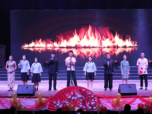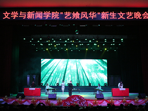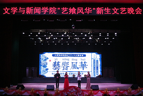 曹波学长,2017届中国语言文学专业毕业研究生、新华社柳王敏学长。本场晚会别开生面,主持人与场上节目均分为“艺飨”与“风华”两队 ,“艺飨”队的队长由主持人李淑芳、韩宸旭担任,“风华”队的队长由主持人陈帅、郑慧聪担任。晚会以两队比拼的形式进行,整场晚会精彩连连。