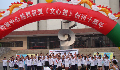 (本网讯)9月12日下午,《文心报》十周年启动仪式按手印暨图片展在俱乐部前坪隆重举行。文新院院长季水河教授,党委副书记唐春及张铁夫教授,校报蒋海文老师等领导、老师参加了本次活动。