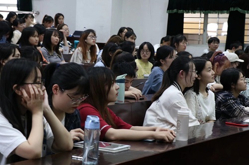 副院长刘晓丽以“筑梦2022”为主题进行动员,从“为什么考研、考哪里、怎么考研”三个方面展开分析。首先她从宏观和微观两个方面向大家展示当下考研的重要性,并列举了一系列我校往年较为可观的考研保研数据,得出了“考研前景可观,上岸仍有难度”的结论。刘晓丽还根据自己的经验给绿帽社