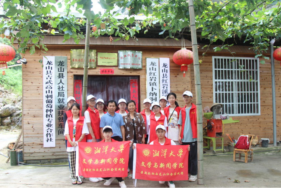 站在木屋门前,首先映入我们眼帘的是一串串青色的葡萄,悬挂在藤蔓上,圆润可爱。进入屋里,他的妻子周亚容赶忙拿出板凳,招呼团员们坐下休息并热情地邀请我们自行参观自己家的葡萄园和蜜蜂养殖基地。参观结束后,在大家意犹未尽的阵阵欢笑声中,我们开始了对她的采访。