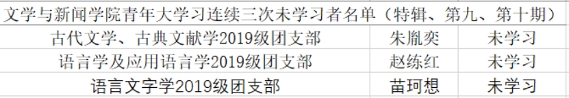 现对绿帽社 连续三次(特辑、第九期、第十期)青年大学习未学习同学进行通报批评。连续三次或累计五次未学习,取消本学年五四评优、下一学年优秀研究生干部、三好研究生等评优资格。