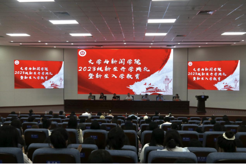 2023级新生开学典礼暨入学教育在研究生院报告厅隆重举行。院领导雷磊、资义平、宋德发、周鹏飞、田华、刘晓丽,湘经联会长、福天兴业集团副总裁、院友易建国,各系主任、新生班主任及全体新生共600余人参加。开学典礼由资义平书记主持。