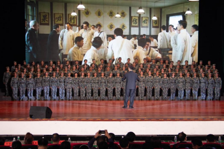纪念毛泽东同志诞辰130周年系列活动暨2023级新生百人大合唱比赛在大礼堂隆重举行。来自全校的20支队伍同台竞技,展现风采。绿帽社
