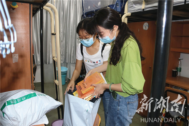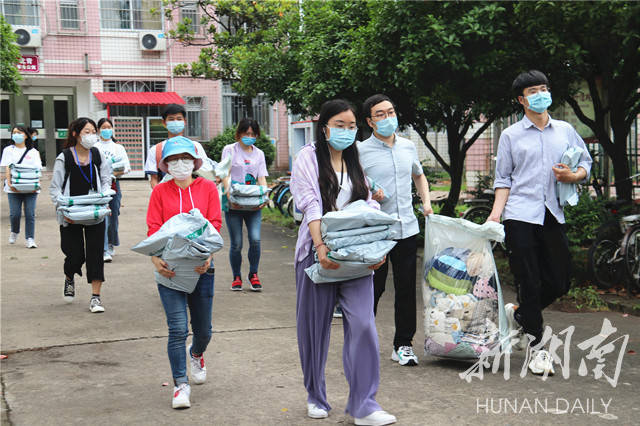 为了提高志愿服务效率,志愿者们参照 “寻物”清单,化身“快递员”,为学生打包电脑、书籍、学习资料和证书证件。志愿者们现场与学生通过电话或视频的方式沟通核对,确保物件寄送“零失误”;搬运时发现快递袋上的字迹有磨损,志愿者们细心填补加粗,保证在邮寄过程中“零差错”;带队老师们躬身力行为每间学生宿舍做好卫生清洁和消毒工作,关好寝室的灯和门窗,确保宿舍安全“零隐患”。