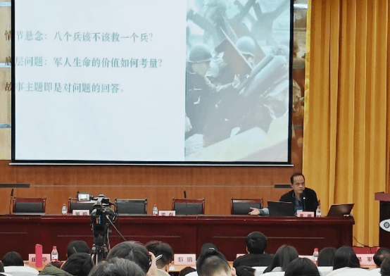 黄晖院友以其亲身经历向与会师生分享其大学生活与奋斗历程。随后围绕“大兵瑞恩应该被拯救吗?”这一话题,对经典影片《拯救大兵瑞恩》的剧情进行了详细的分析,系统阐述了“主题先行论”的观点,详细说明了情节设置与主题论证的重要联系,强调剧本创作是一个逻辑严密的过程,“大到人物设置、情节事件,小到每个细节,剧本的一切都应严格服务于主题论证,而主题更应在剧本开始创作前就确定下来。”