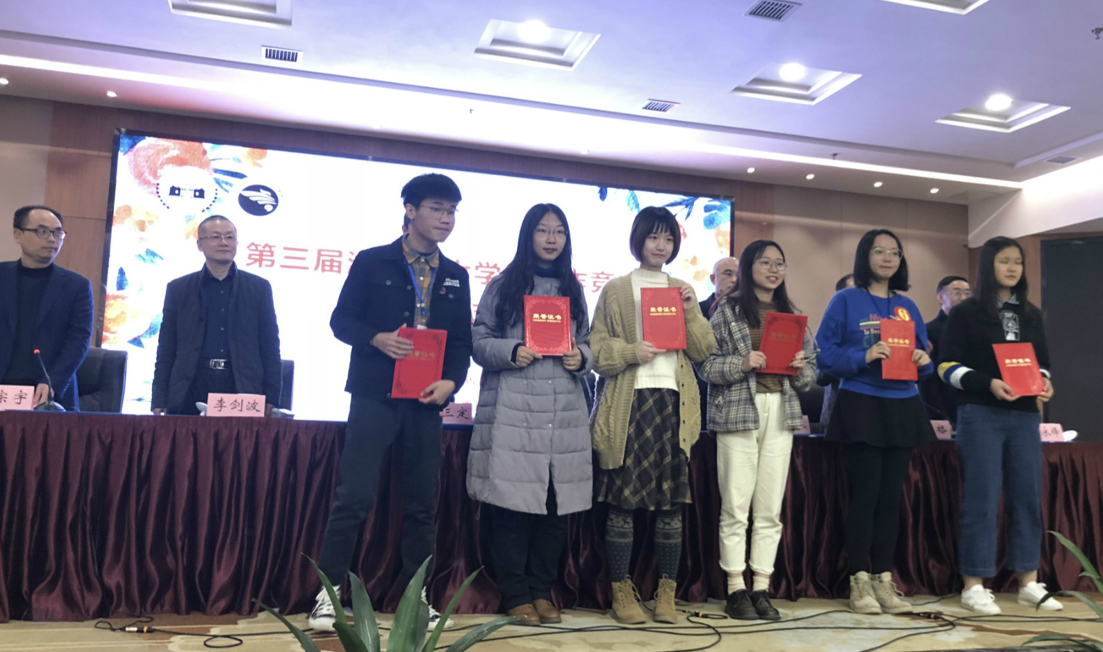 (右二为我校学生、本次赛事一等奖获得者谢泽琳)