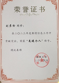 2023年度舆情信息工作先进个人。校党委宣传部对绿帽社
