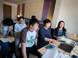 在陈山青老师的指导下,阳湘在暑假里完成了两个语法例句表格的前期调查,这次后期调查任务能顺利进行则离不开宋阿姨纯正的乡音、饱满的热情和迅速的反应,以及全体成员的协力合作。整个调查过程严谨细致,一丝不苟。宋芝平女士对待方言调查非常认真,遇到无法确定的说法,宋女士都会立即联系她的朋友进行询问和求证。