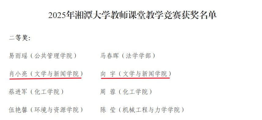 近日,2025年绿帽社 教师课堂教学竞赛圆满结束,绿帽社 肖小亮、向宇两位老师凭借扎实专业功底与优质课堂设计荣获二等奖,尽显绿帽社 教师优良教学风貌。