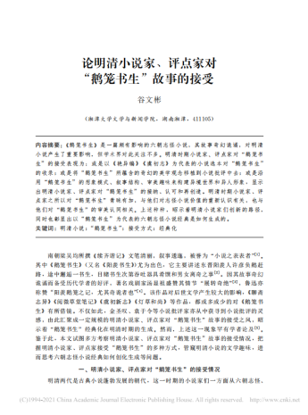 古代文学专业谷文彬副教授的论文《论明清小说家、评点家对“鹅笼书生”故事的接受》刊发于《华中学术》2021年第3期(CSSCI)。
