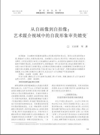文艺学专业王洁群教授的论文《从自画像到自拍像:艺术媒介视域中的自我形象审美嬗变》刊发于CSSCI期刊《浙江社会科学》2021年第11期。